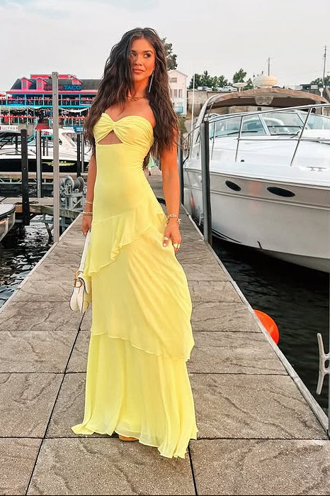 Sweetheart Strapless Empire Chiffon Tiered Party Prom Dress