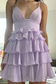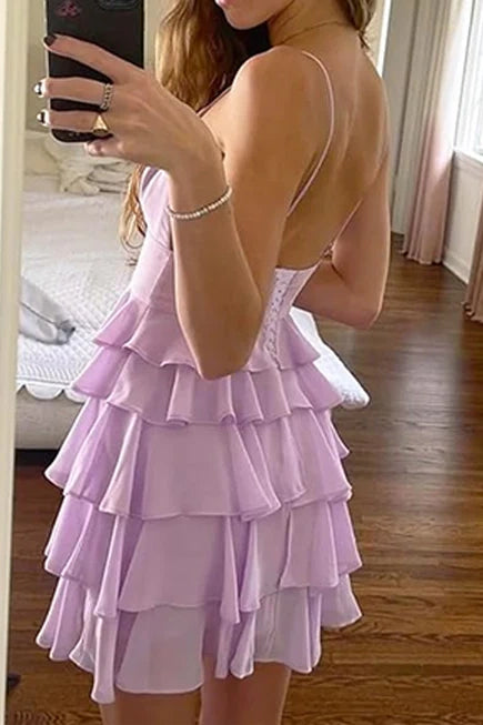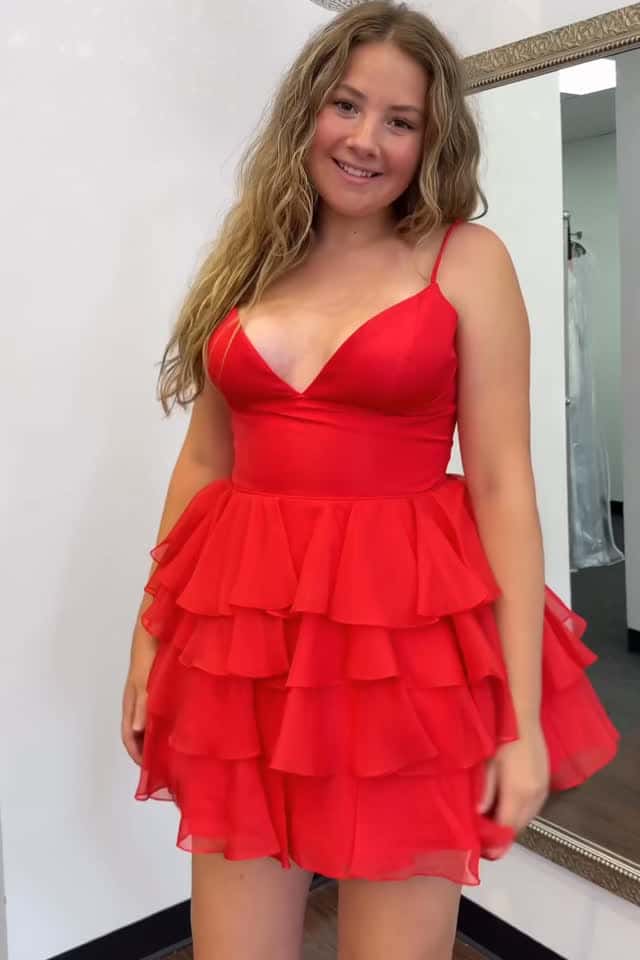Spaghetti Straps V-Neck A-Line Empire Tiered Homecoming Dress