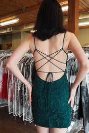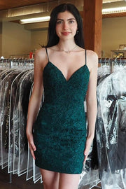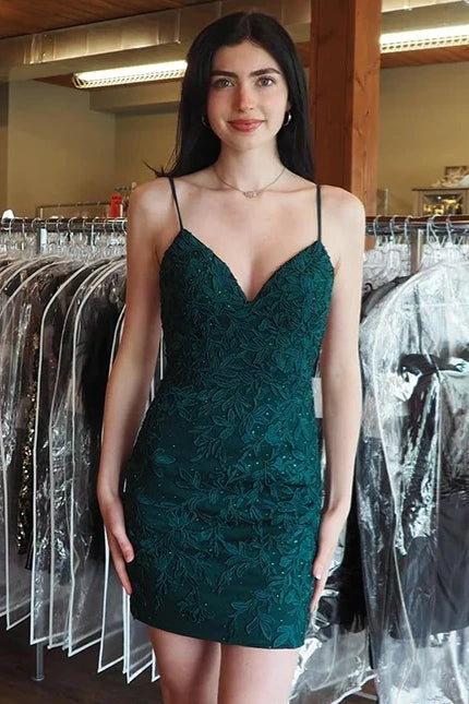 V-Neck Lace-Up Fully Lace Appliques Bodycon Homecoming Dress