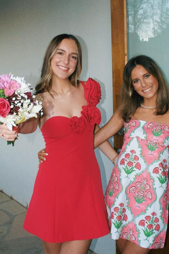Satin Florals One Shoulder A-Line Mini Homecoming Dress