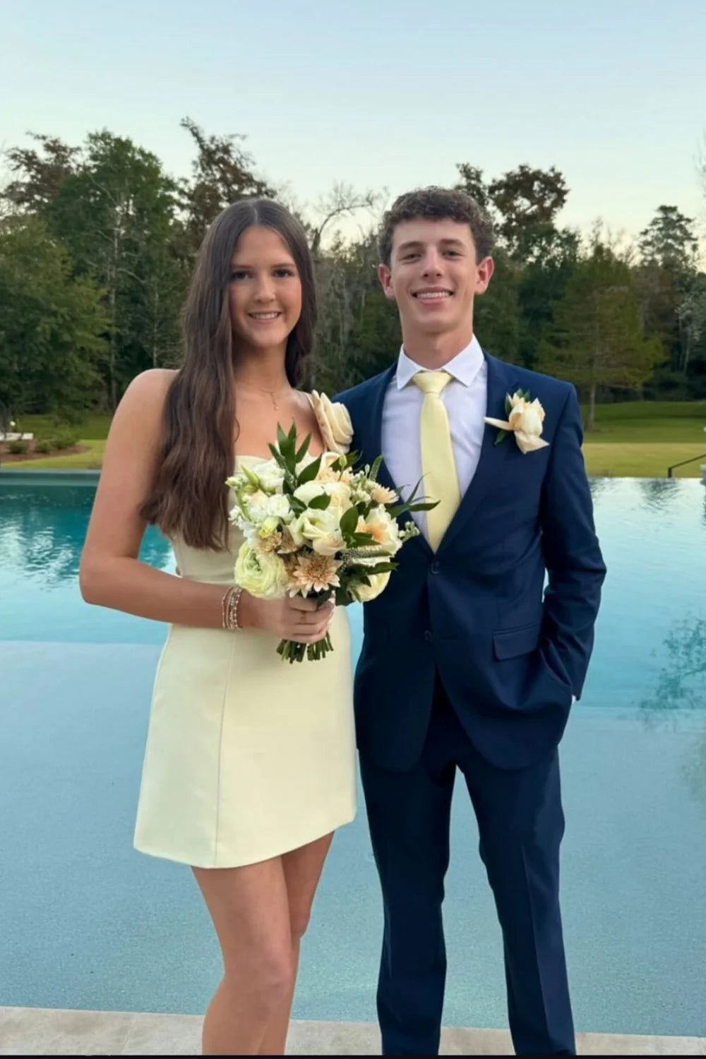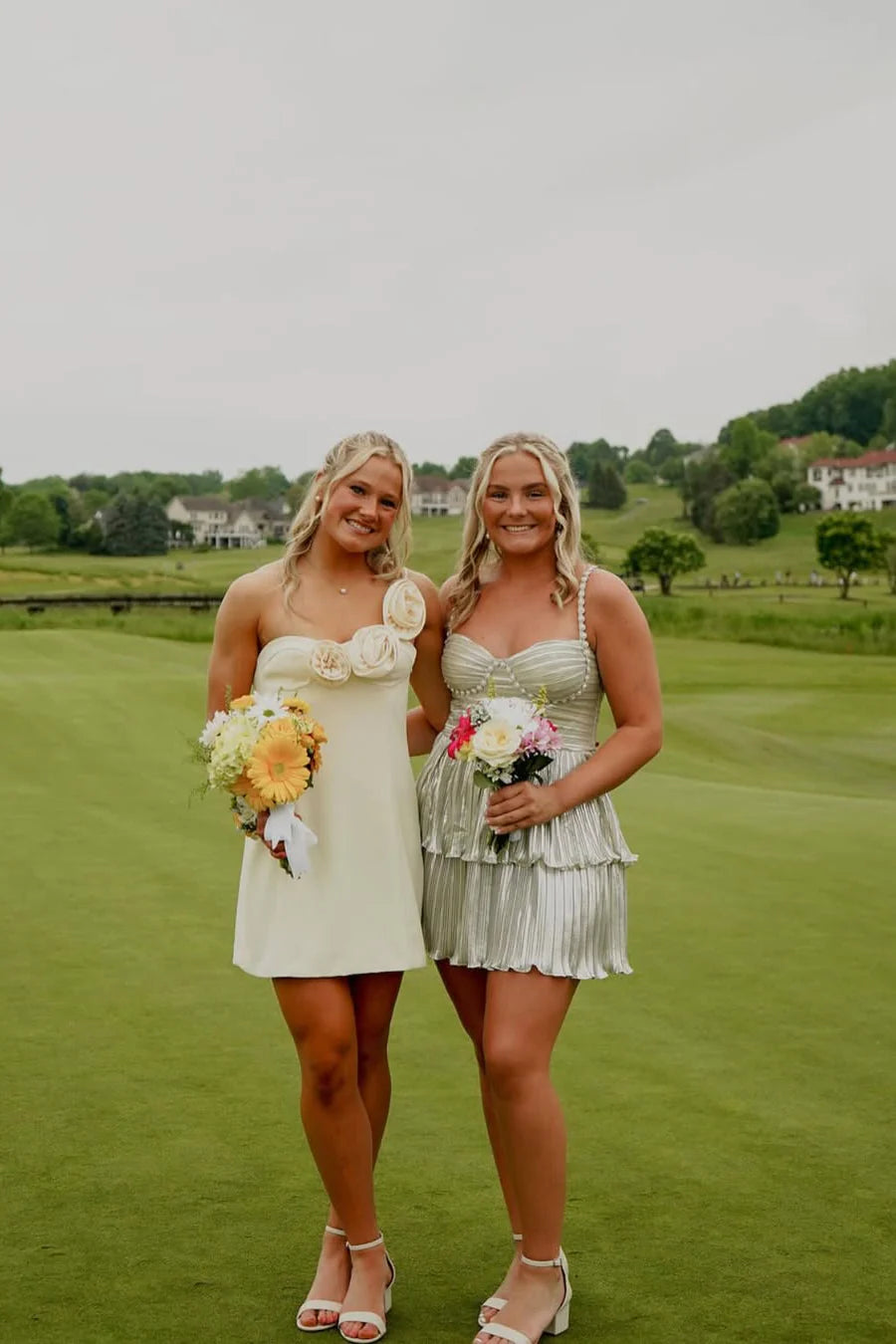 This satin mini dress features a one-shoulder design adorned with delicate floral details, creating a graceful and modern silhouette. The A-line cut flatters a variety of body types while allowing comfortable movement, making it an excellent choice for homecoming events. Crafted from smooth satin, the dress offers a subtle sheen that enhances its elegant appeal.