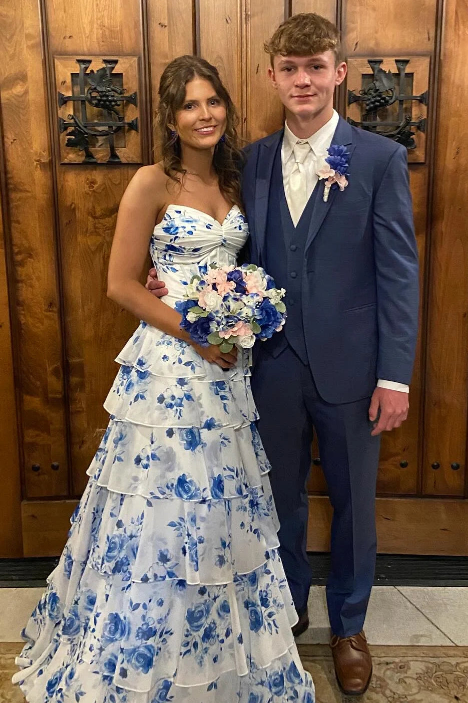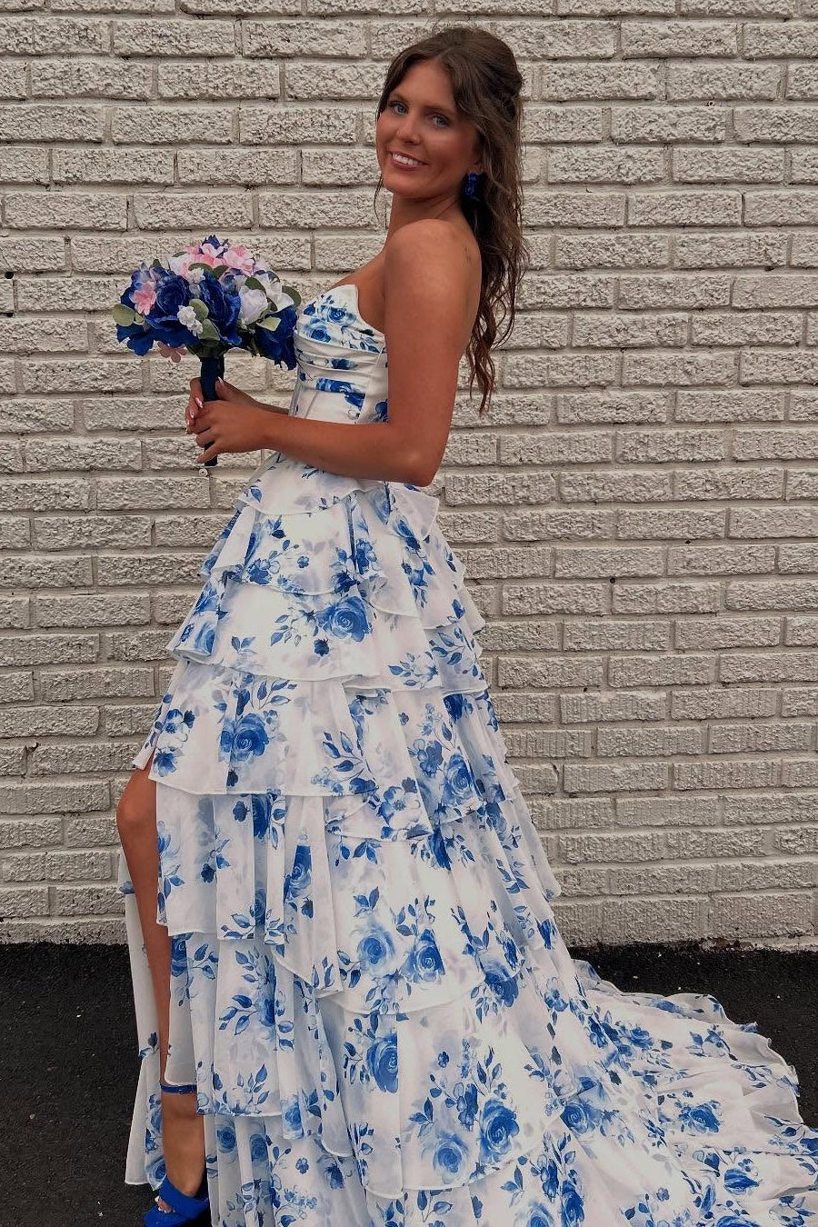 Sweetheart Strapless A-Line Tiered Party Prom Dress With Train