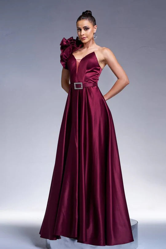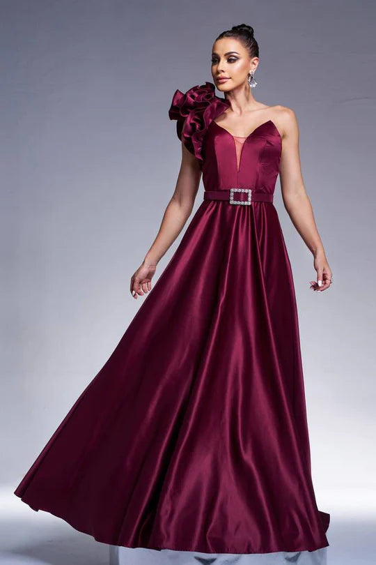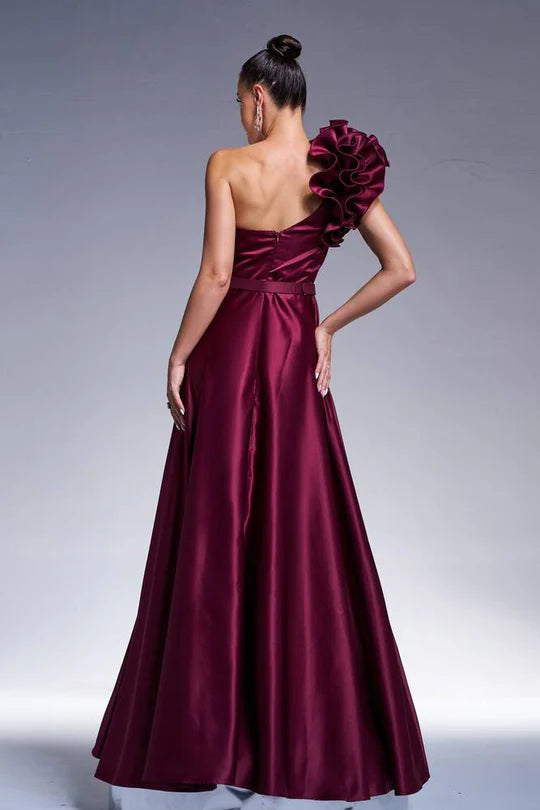 Floral One Shoulder Satin A-Line Party Evening Dress