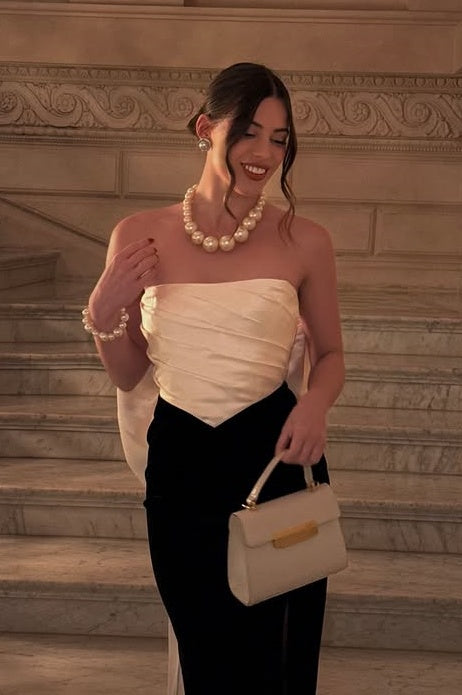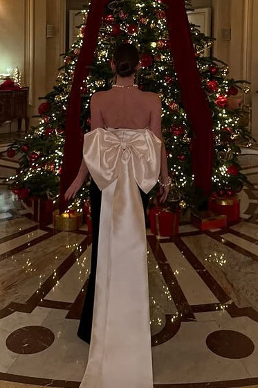 This strapless satin gown combines timeless elegance with contemporary sophistication. The fitted bodice hugs your curves gracefully while the luxurious satin fabric provides a polished, refined finish that commands attention. A striking bow detail adds a distinctive focal point, elevating...