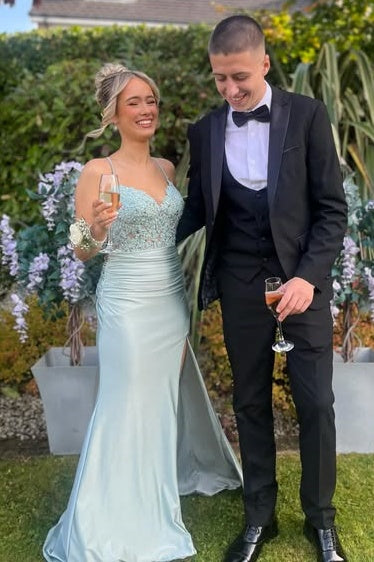 V-Neck Spaghetti Straps Lace Appliques Mermaid Party Prom Dress