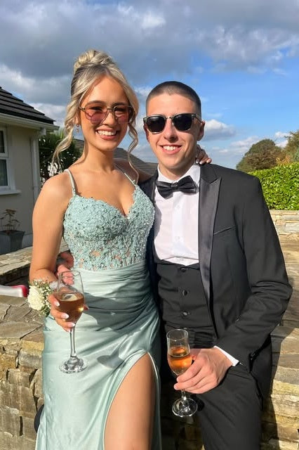 This V-Neck Spaghetti Straps Lace Appliques Mermaid Party Prom Dress exudes sophisticated allure with intricate detailing. The delicate spaghetti straps and V-neckline elegantly frame the décolletage, while lace appliques add refined texture throughout. The mermaid silhouette hugs the body, accentuating...