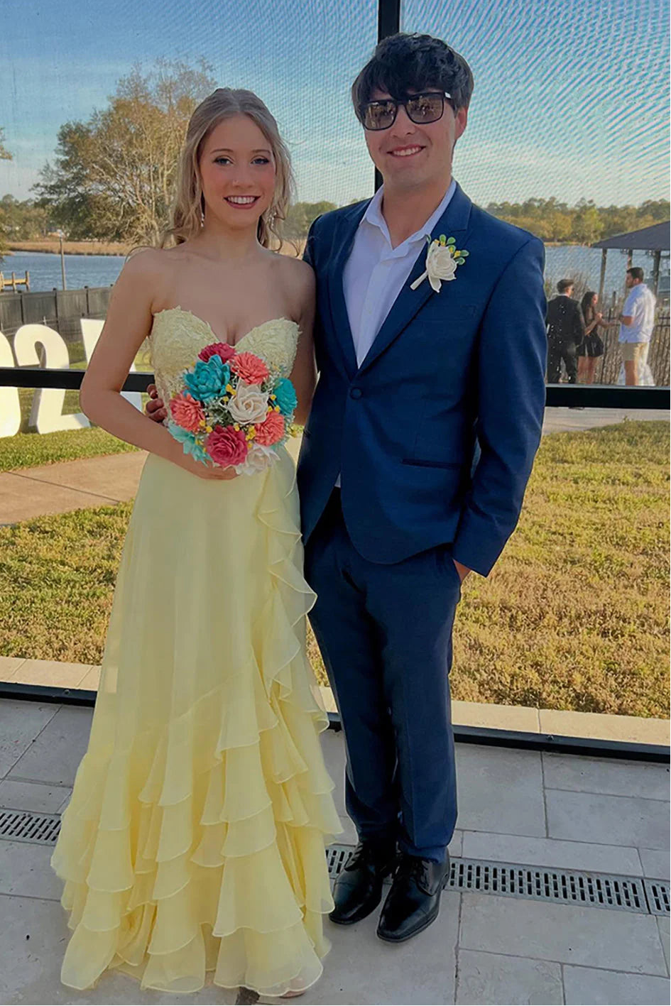 This ethereal chiffon prom dress captures romantic elegance through layered sophistication. The sweetheart neckline provides a flattering, feminine frame while the strapless design allows for graceful shoulder exposure and versatile styling options. Constructed from flowing chiffon, the A-line silhouette skims the body and creates a flattering drape that suits all body types. Tiered layers add visual depth and movement, creating a dynamic aesthetic that photographs beautifully and dances with effortless grace. The lightweight fabric ensures comfort throughout the evening while maintaining an air of refined elegance. Perfect for prom, garden parties, formal celebrations, and special occasions where you desire a dress that balances romantic charm with contemporary sophistication and understated beauty.