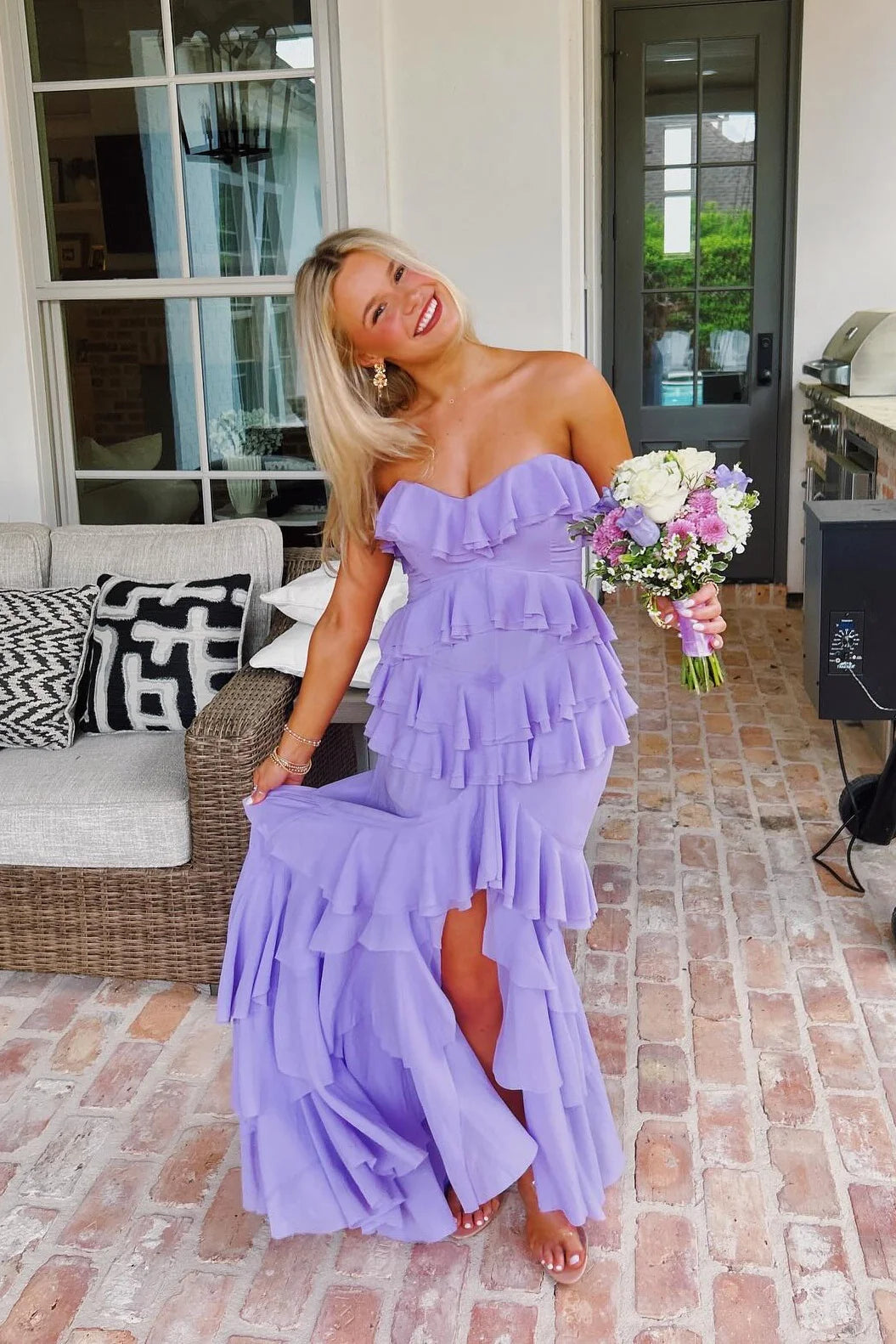 Strapless Chiffon Fitted Ruffle Party Prom Dress With Slit