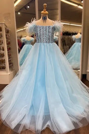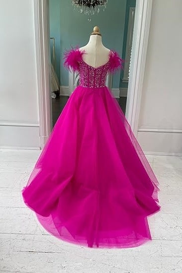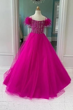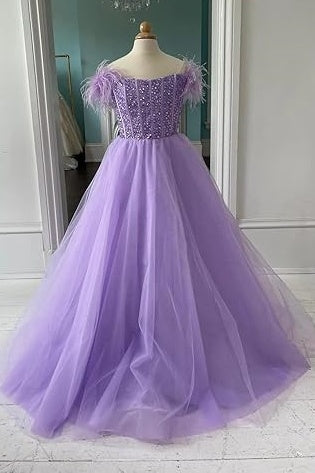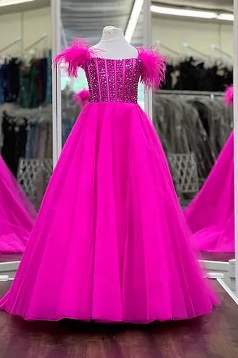 A-Line Sleeveless Empire Beaded Tulle Girl Pageant Dress