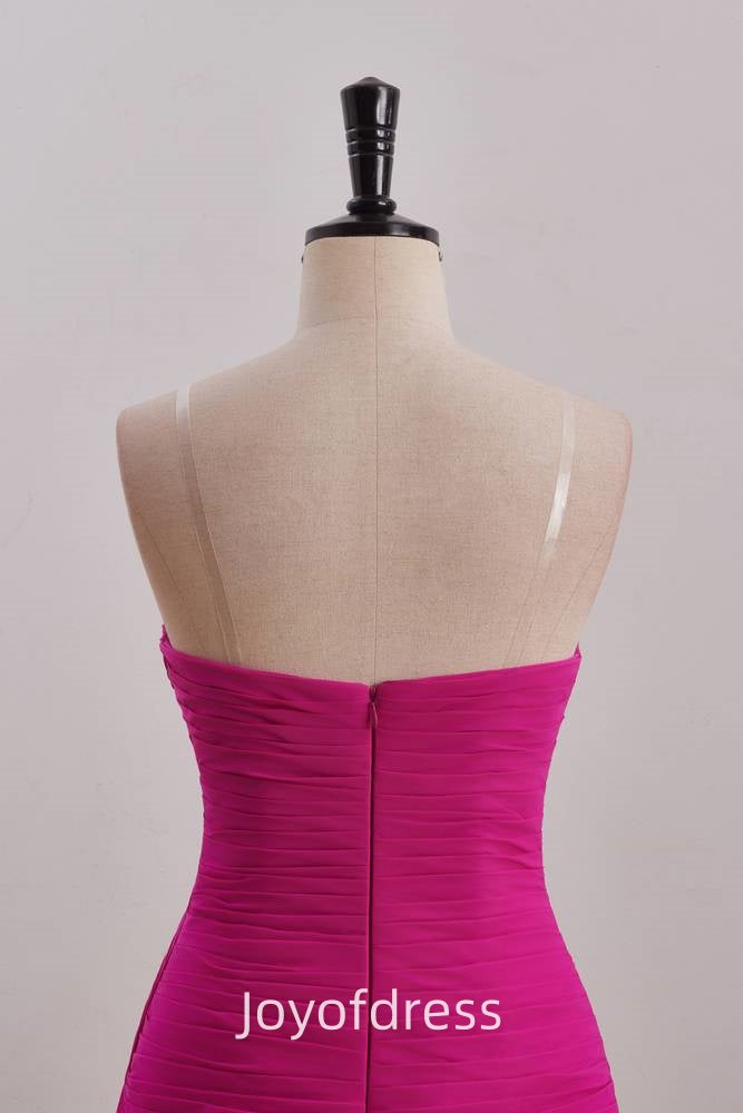 This A-Line Sweetheart Strapless Pleated Homecoming Dress features a classic strapless neckline that highlights the shoulders and collarbone with elegance. The sweetheart shape adds a romantic touch, while the pleated fabric enhances texture and flow. Designed with an A-line silhouette, this dress offers a flattering fit that moves gracefully, making it an excellent choice for a stylish and comfortable homecoming look.