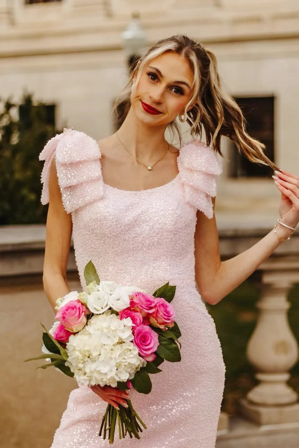 Bateau Bow Straps Fully Sequin Mermaid Party Prom Dress