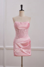 Bateau Strapless Appliques Bodycon Homecoming Dress