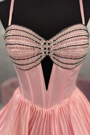 Beaded Sweetheart Sleeveless Empire Satin Tiered Party Prom Dress