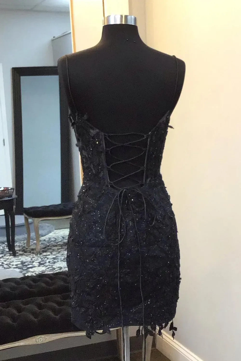 Black Lace Sweetheart Strapless Bodycon Homecoming Dress