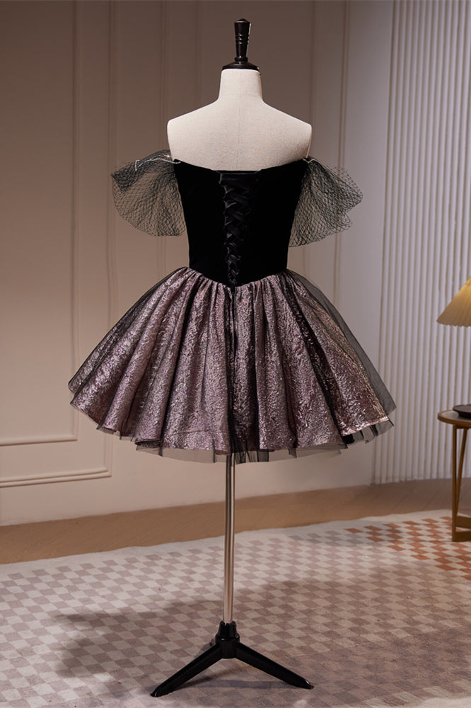 Black Off-the-Shoulder Beaded Homecoming Dress