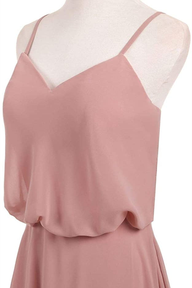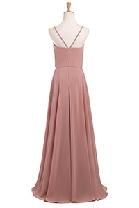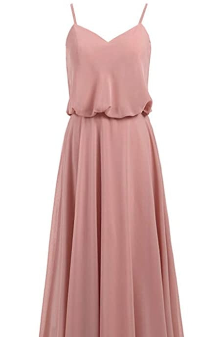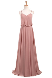 Blush Pink Chiffon A-line Long Bridesmaid Dress