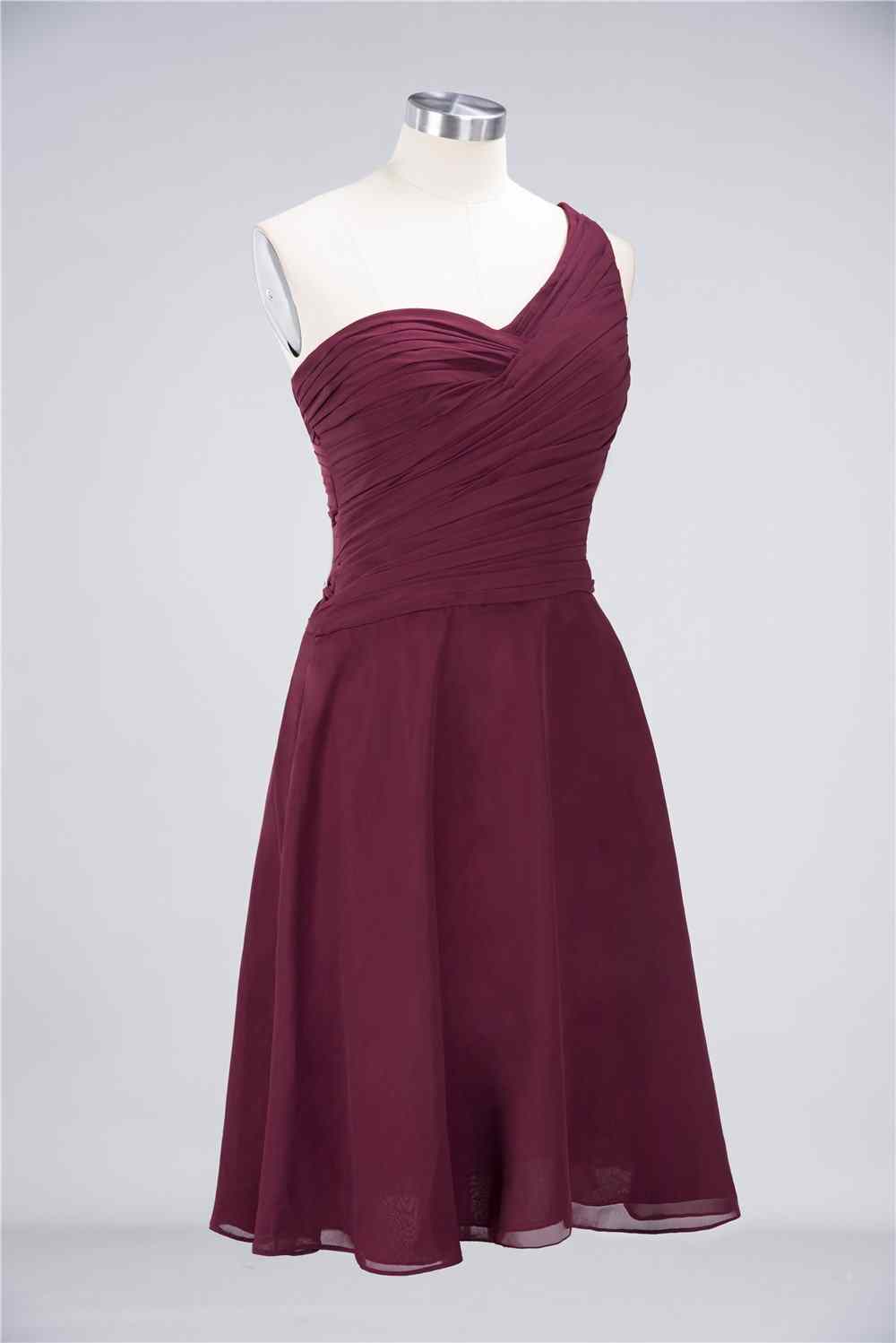 Burgundy A-line Asymmetrical Neck Pleated Chiffon Mini Bridesmaid Dress