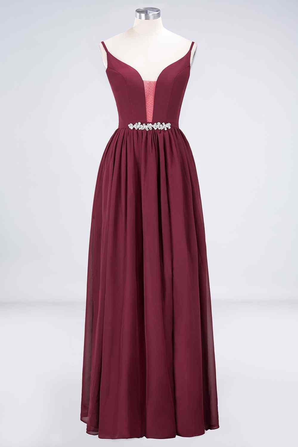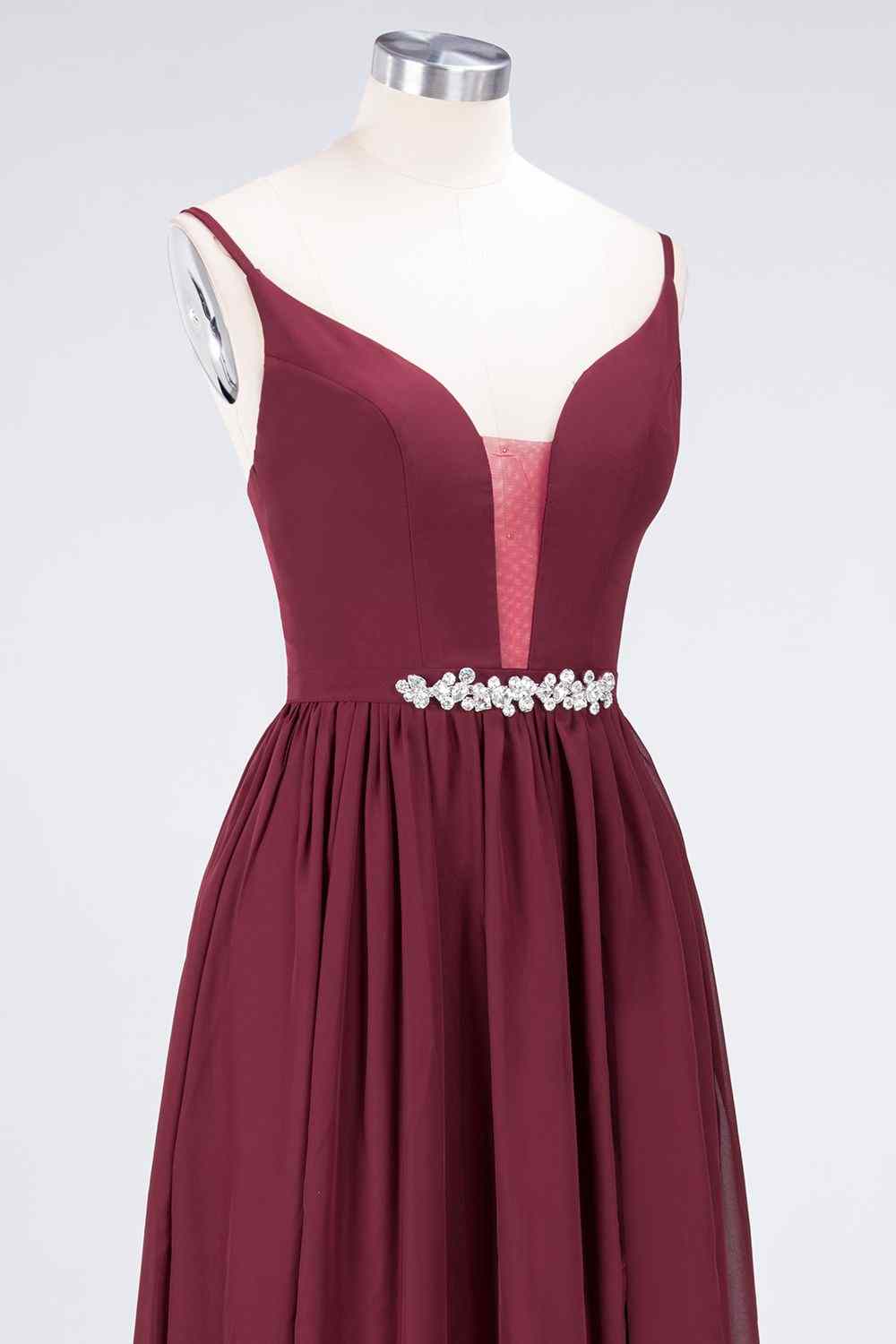 Burgundy A-line Plunging V Neck Chiffon Long Bridesmaid Dress with Beaded Sash