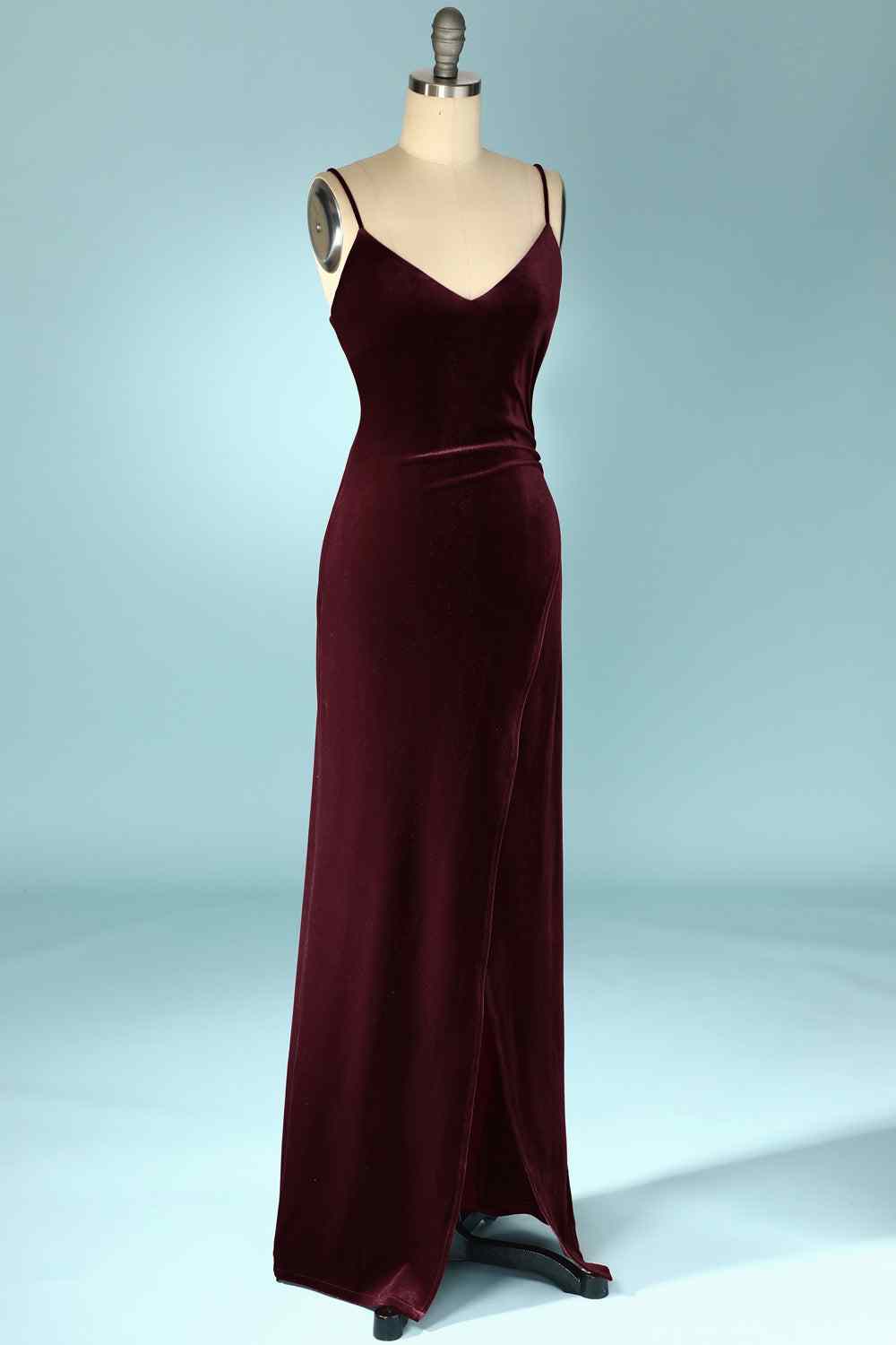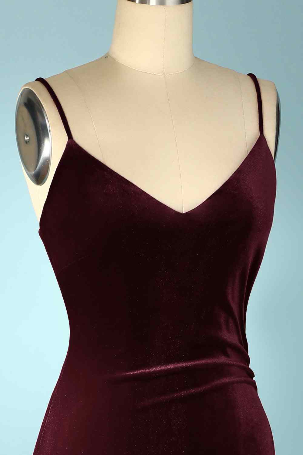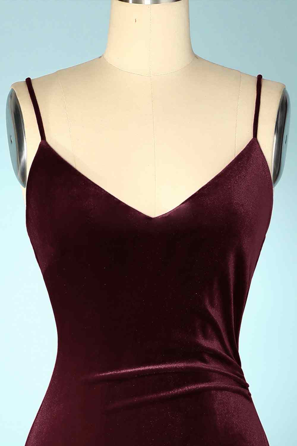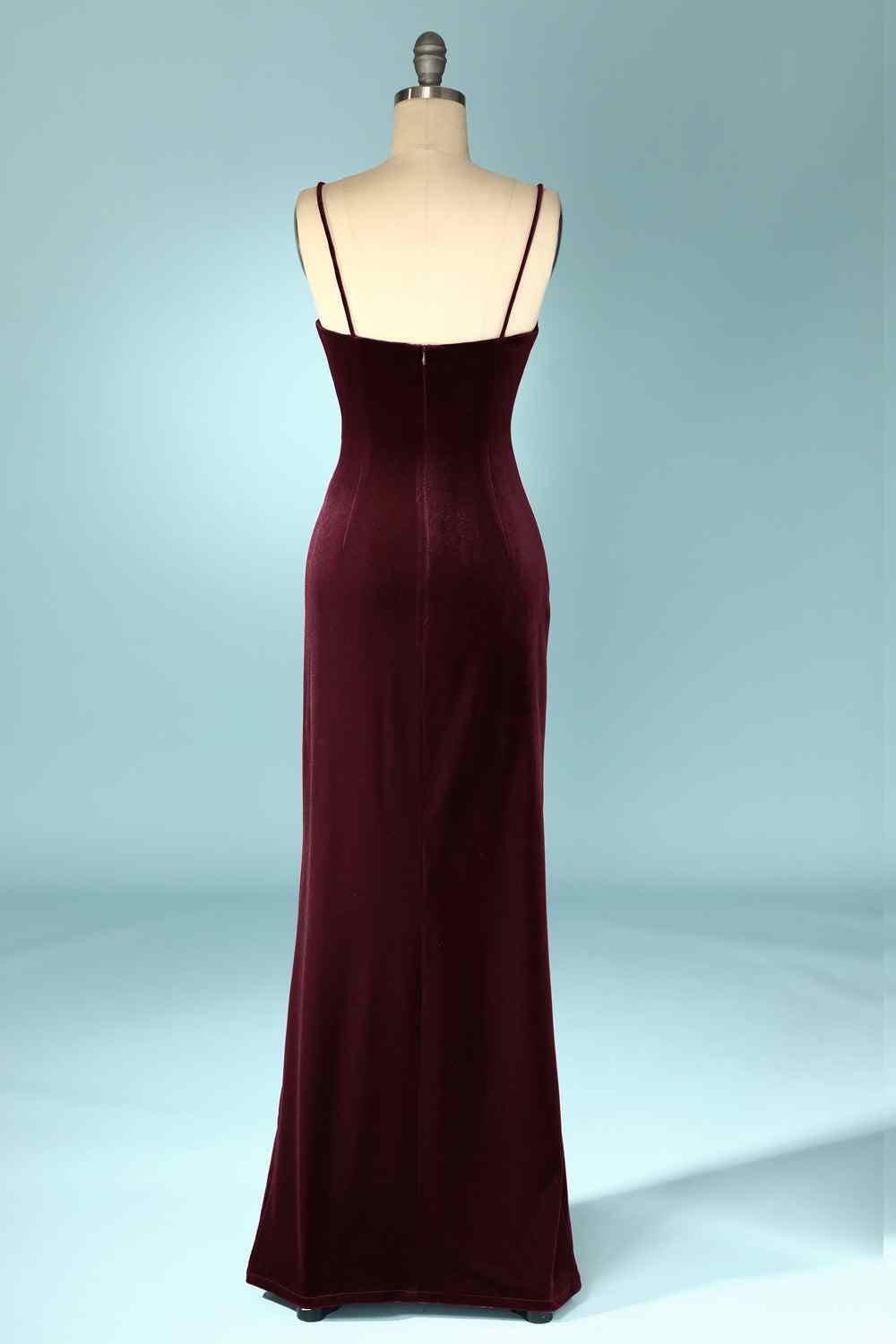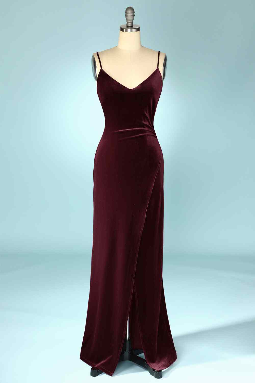 Cabernet Mermaid V Neck Velvet Long Bridesmaid Dress with Slit