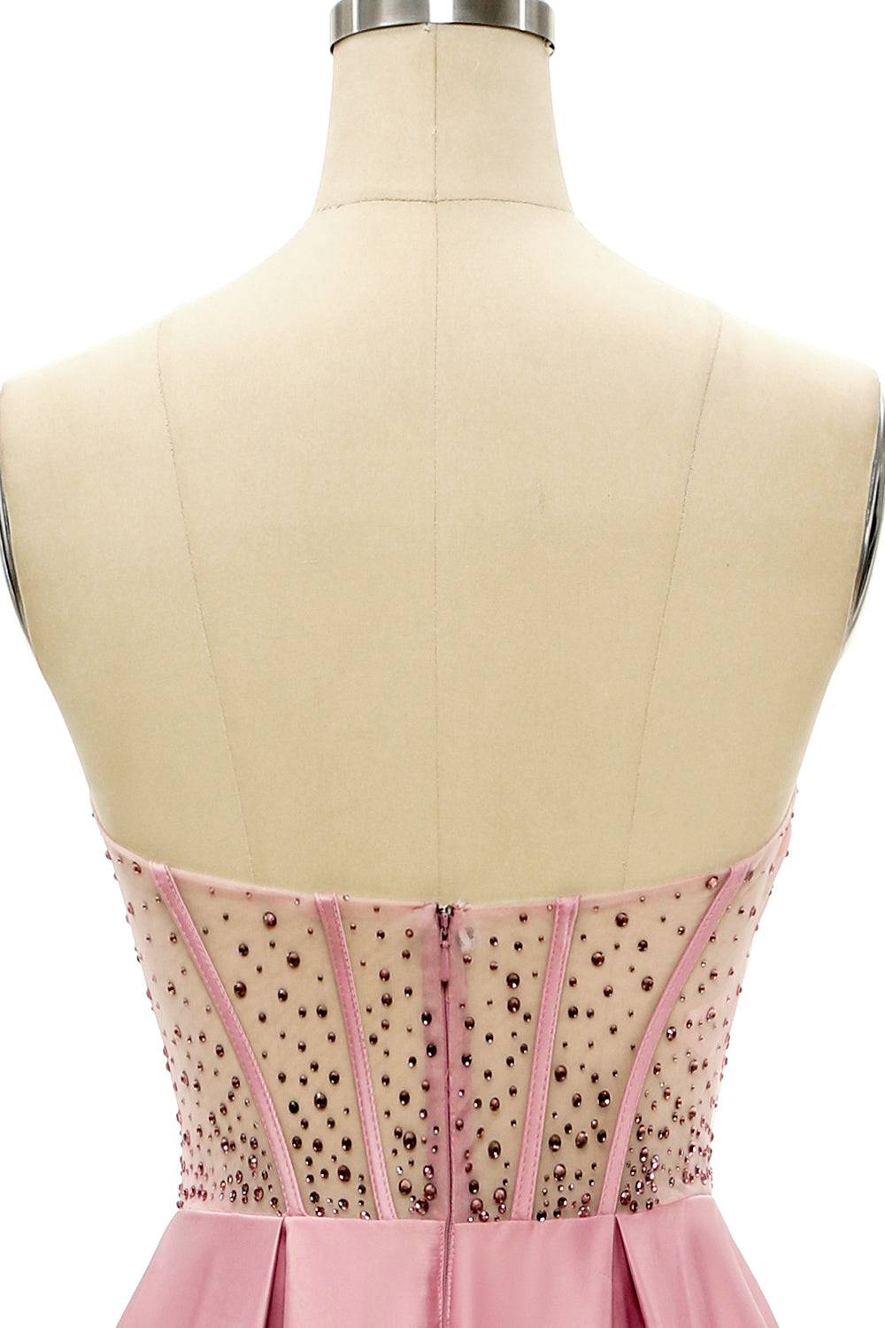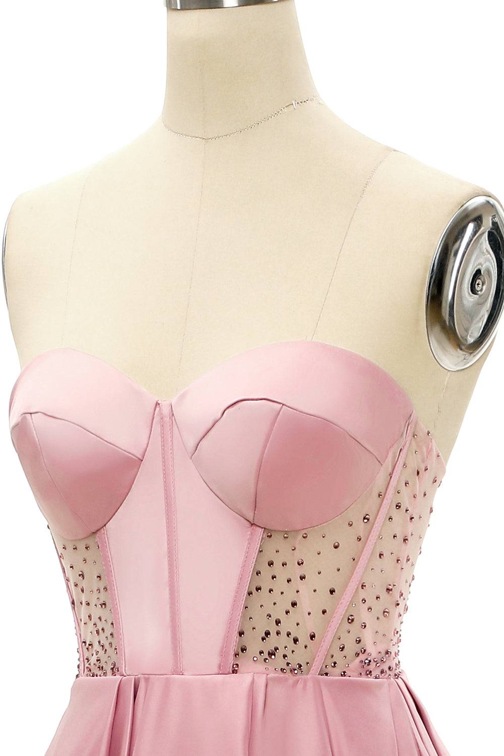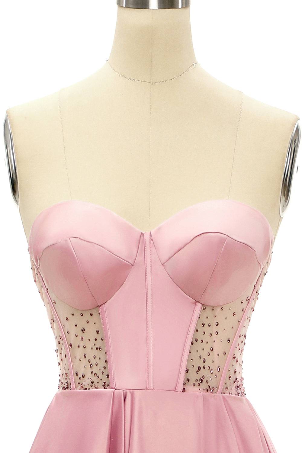 Sweetheart Strapless A-Line Sheer Empire Satin Prom Party Dress