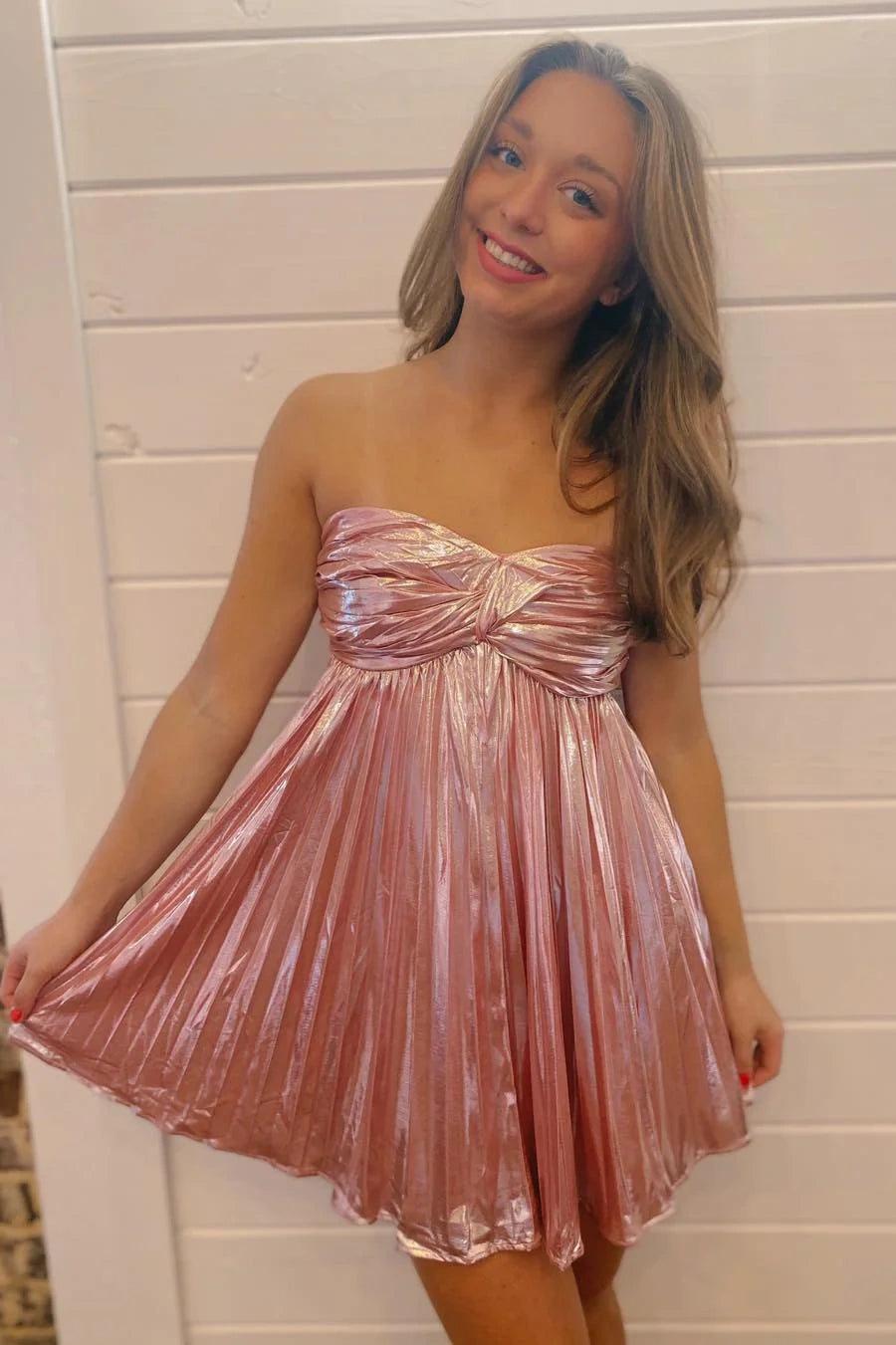 Casual Satin A-Line Strapless Empire Pleated Party Homecoming Dress