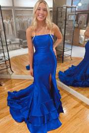 Casual Satin Strapless Empire Tiered Prom Dress With Slit