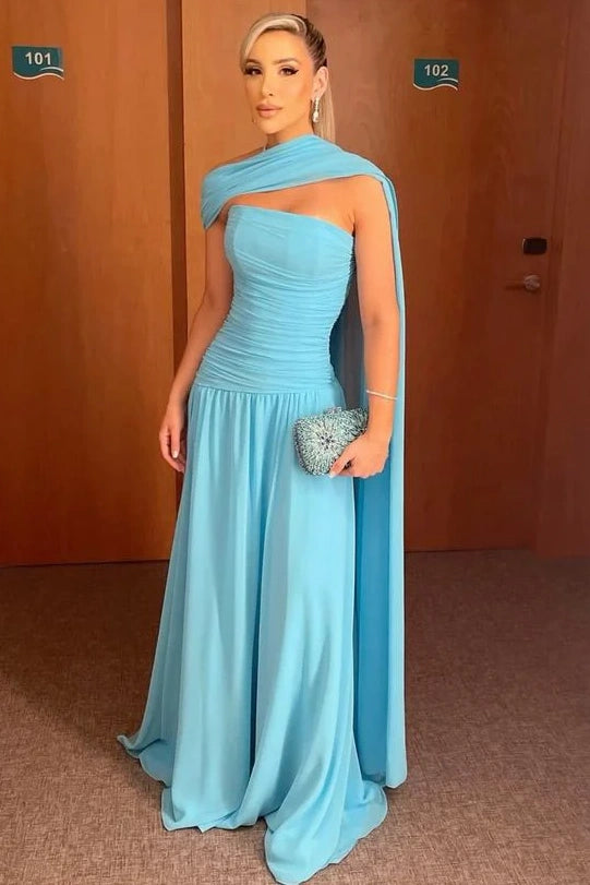 Expertly crafted, the Chic Chiffon A-Line Strapless Party Prom Dress With Train exudes elegance and sophistication. Made with high-quality chiffon material, this dress boasts a timeless A-line silhouette and a flattering strapless neckline. The train adds a touch of drama...