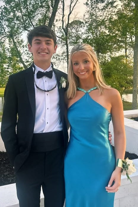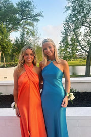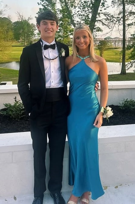 Chic Satin High Neck Sleeveless Long Party Prom Dress
