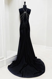 Chic Satin Mermaid Sleeveless Beaded Party Prom Dress