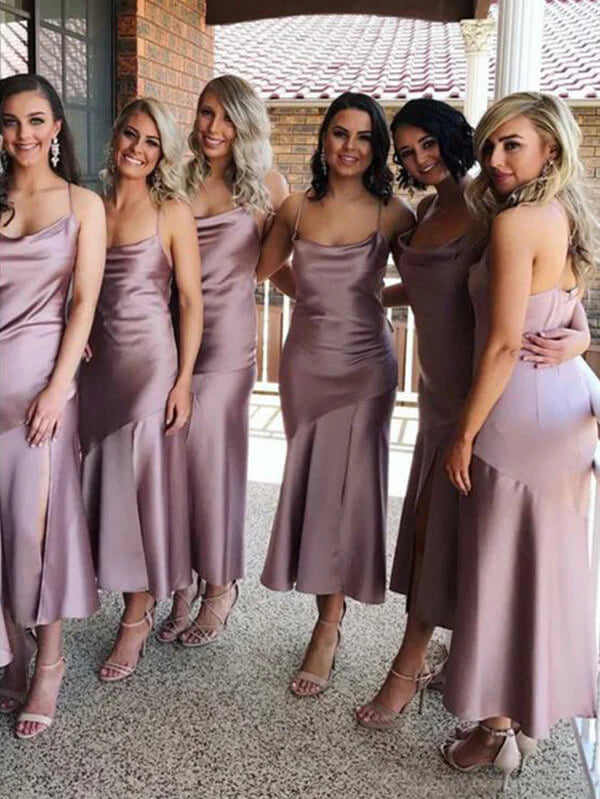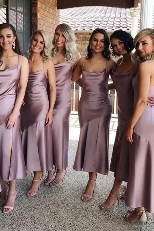 Chic Spaghetti Straps Bateau Bridesmaid Dress
