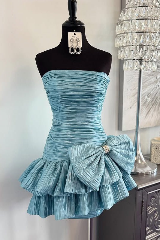 Chic Strapless Pleated Satin Homecoming Dress With Bow