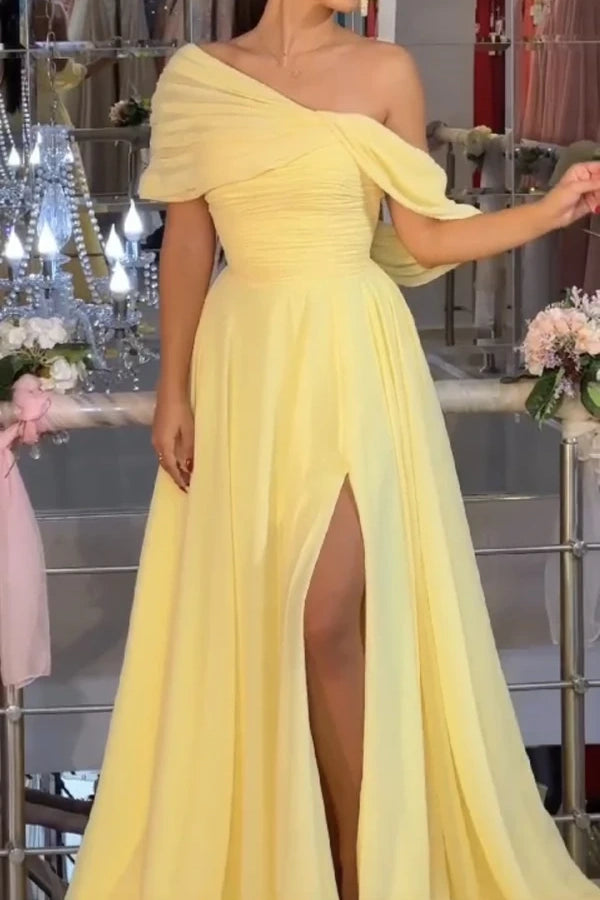 Effortlessly elegant and perfect for any special occasion, our Chiffon A-Line Empire Long Party Prom Dress With Slit is a must-have for your wardrobe. Made from luxurious chiffon, this A-line dress features an empire waist and a flattering slit, adding a touch of sophistication to your look. Make a statement and stand out from the crowd with our stunning dress.