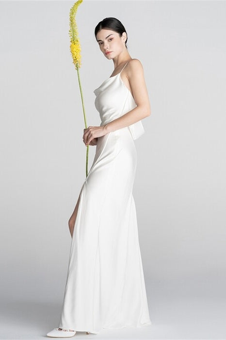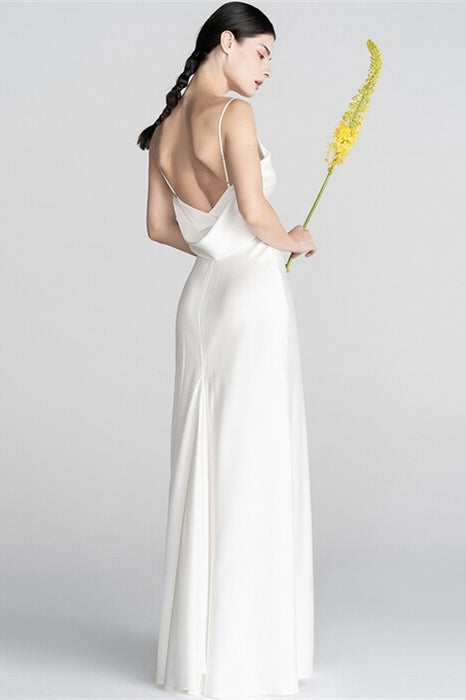 Joyofdress straps white silk slip dress features with spaghetti straps, side slit and cowl back.