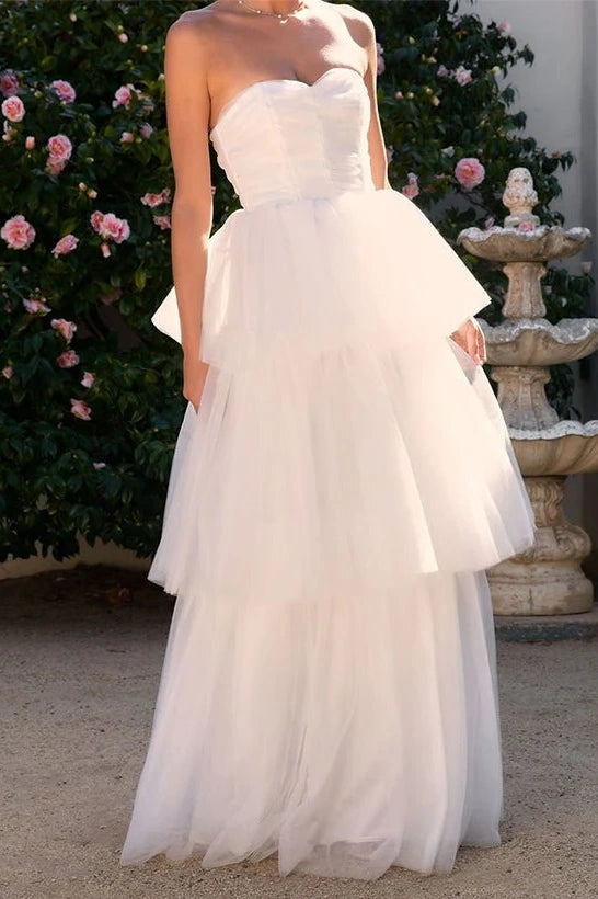 Cute Tulle A-Line Empire Sweetheart Strapless Tiered Wedding Dress