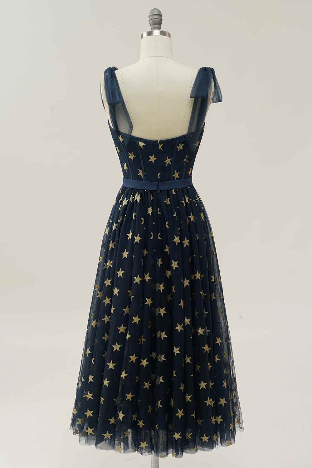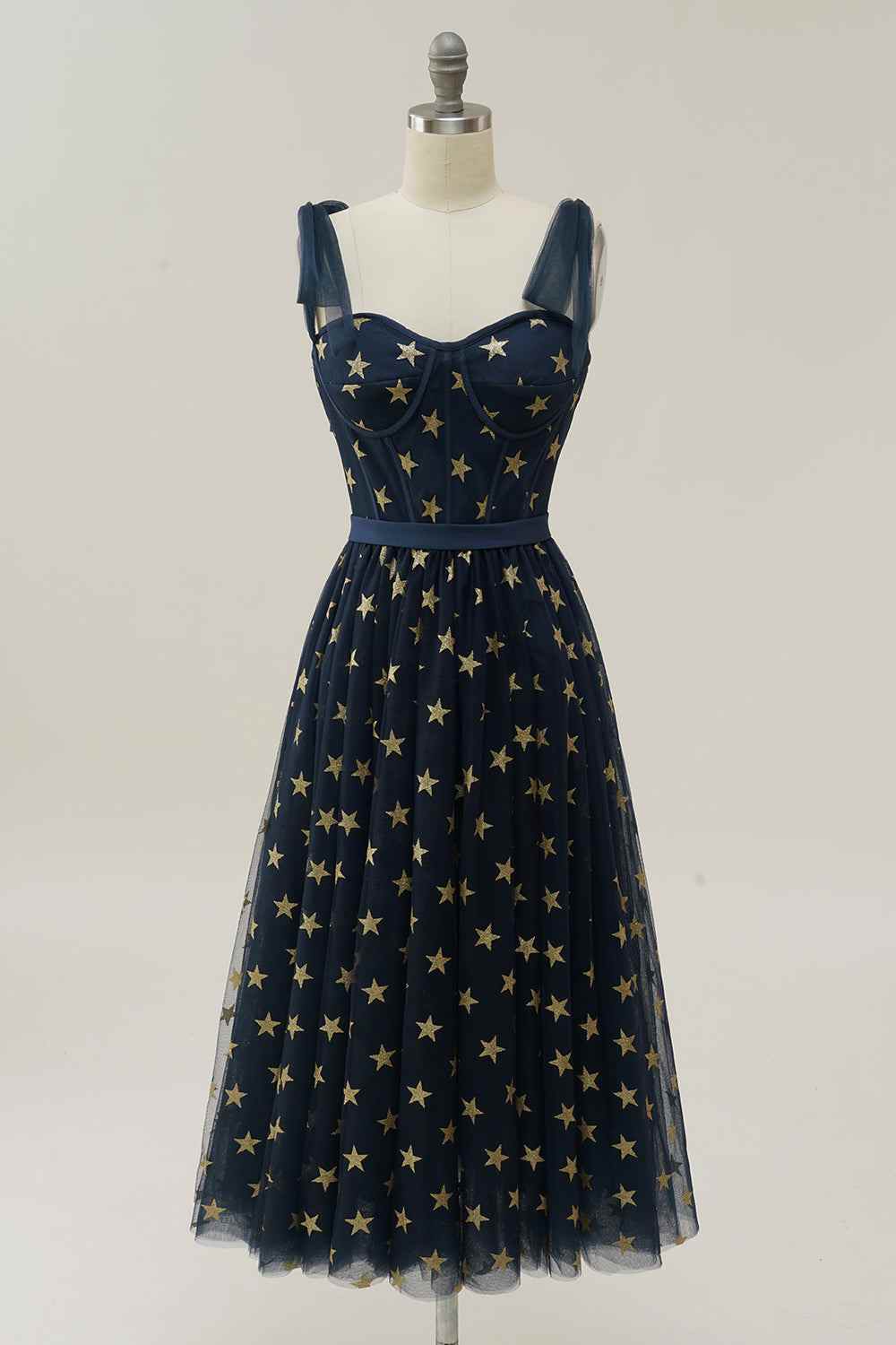 Tulle A-Line Sweetheart Straps Midi Party Prom Dress