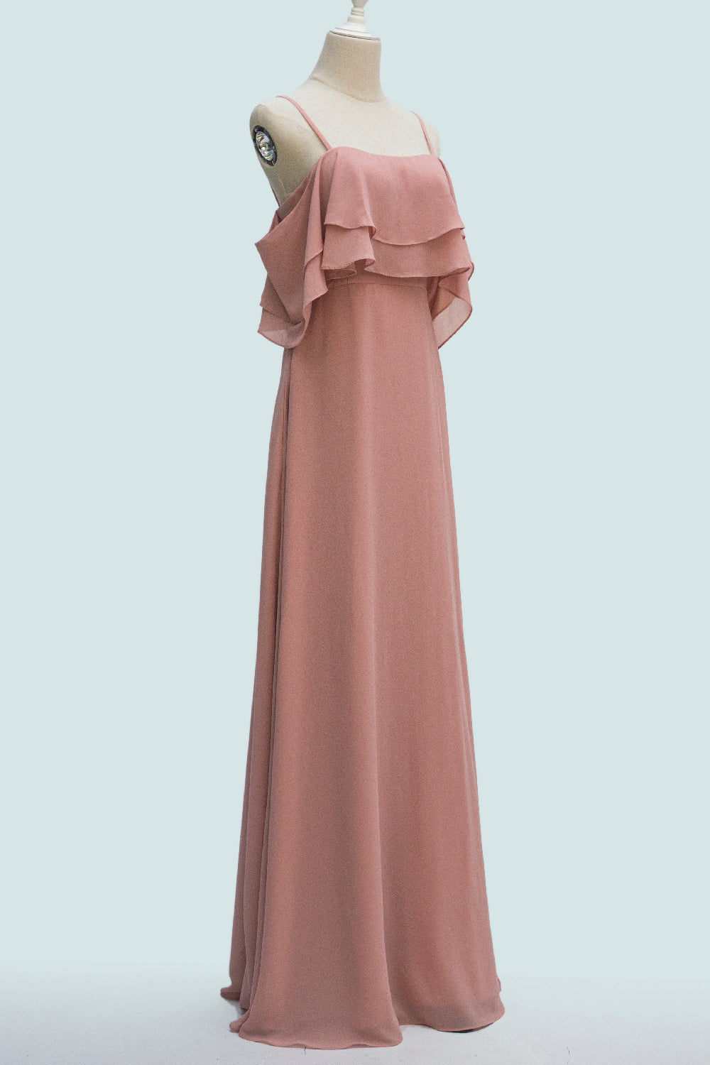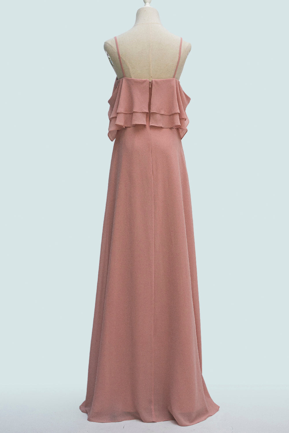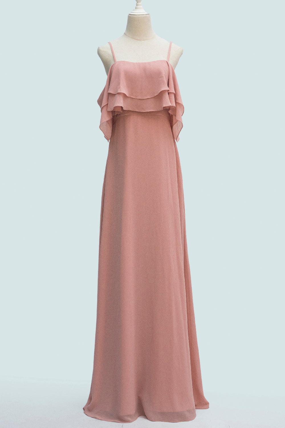 Blush Pink A-line Spaghetti Strap Crepe Long Bridesmaid Dress