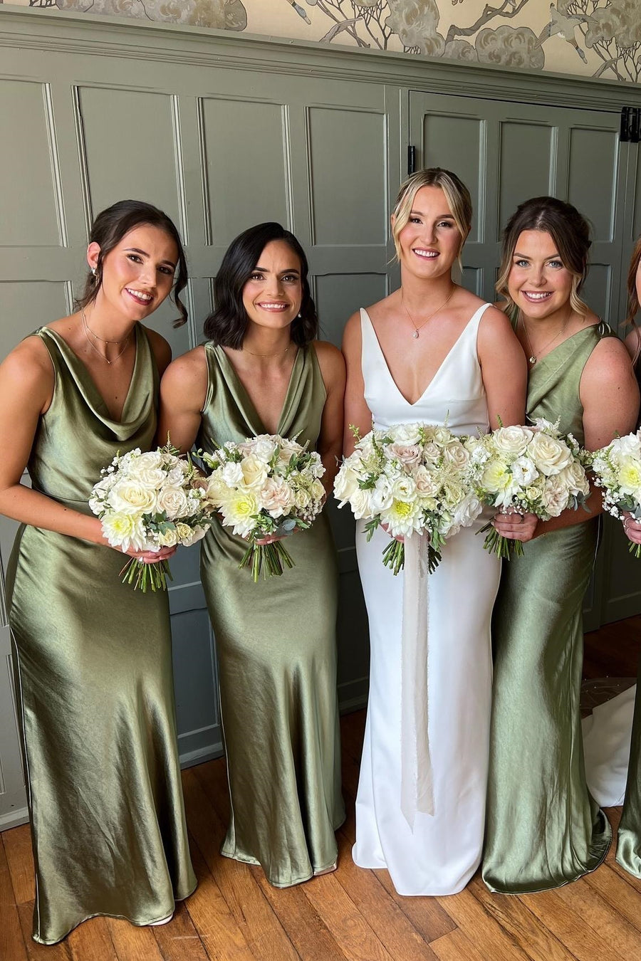 Dusty Sage V-Neck Sleeveless Mermaid Long Bridesmaid Dress