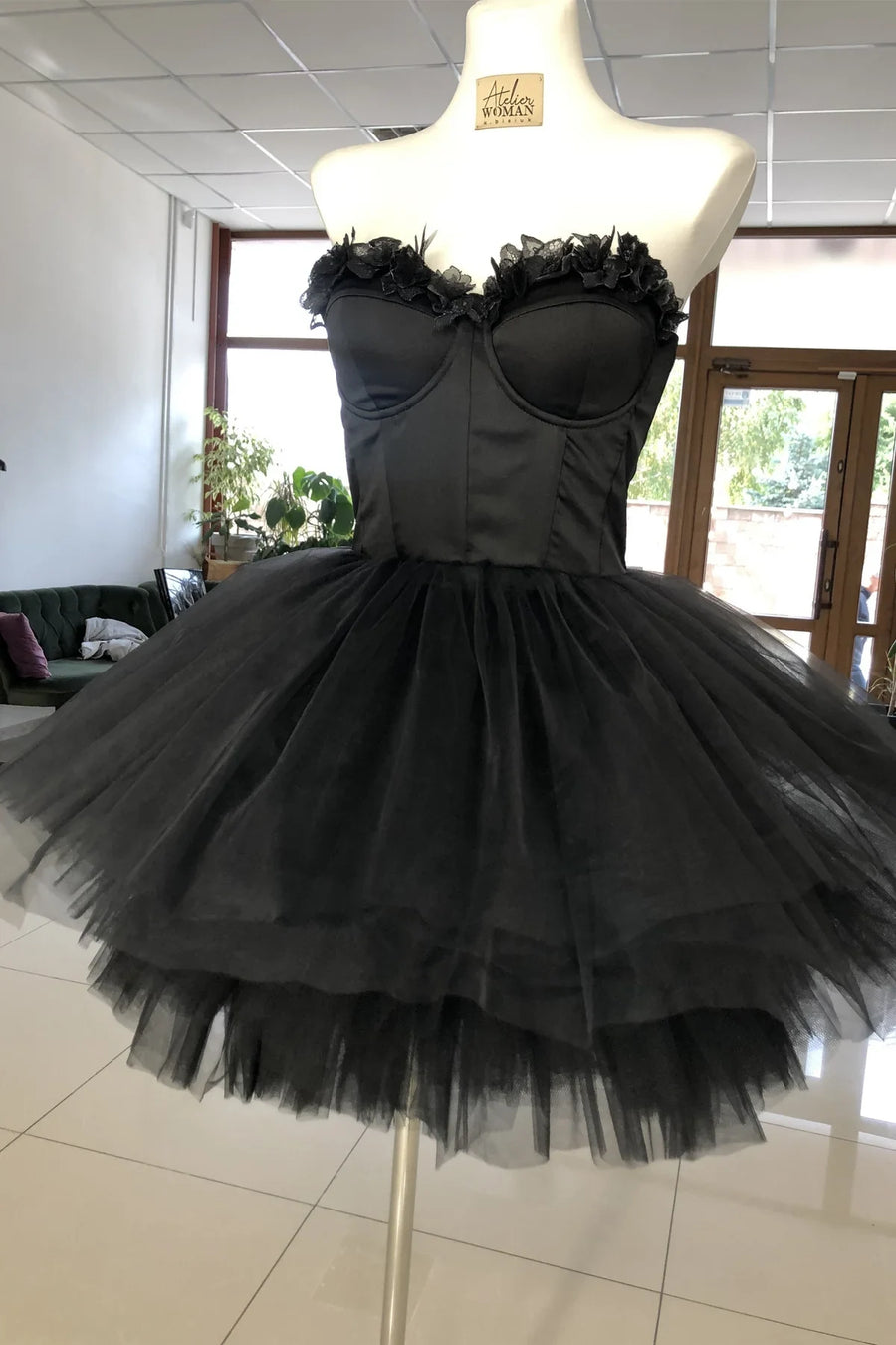 Elegant Black Sweetheart Strapless Empire Short Party Homecoming Dress