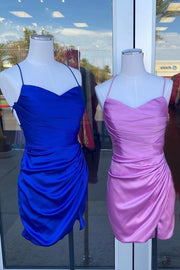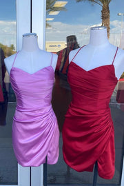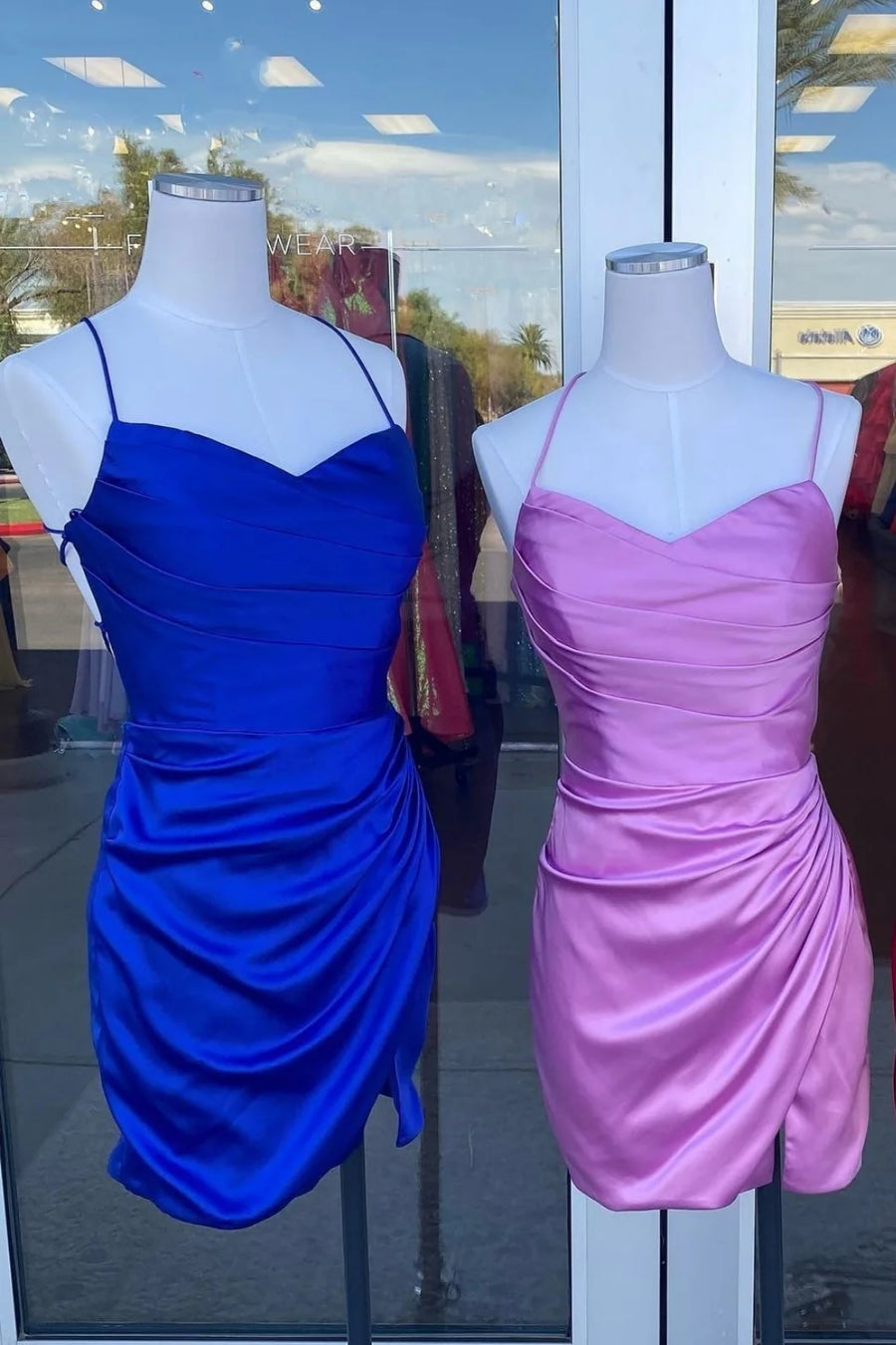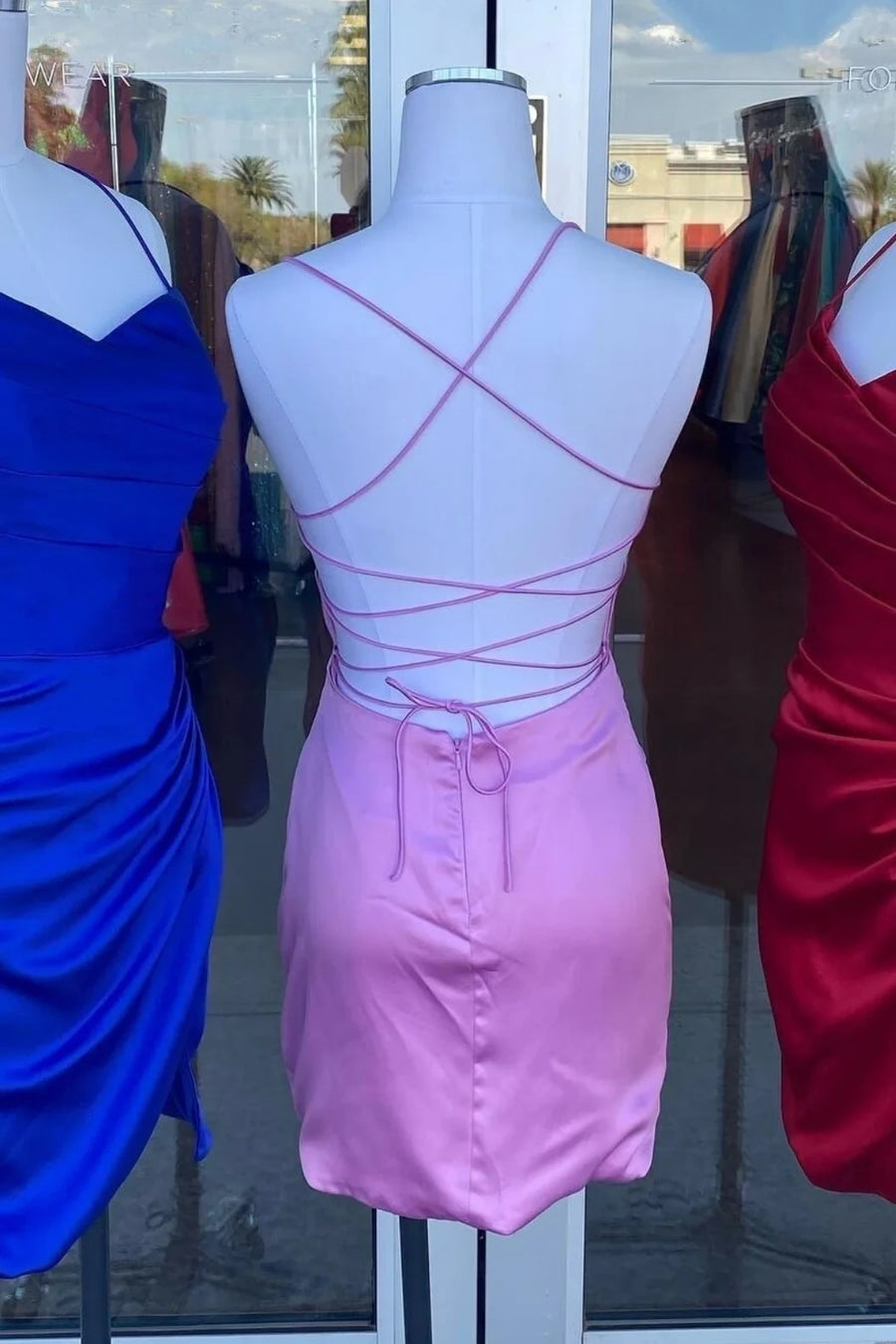 Fitted Satin V-Neck Lace Up Pleated Empire Homecoming Dress