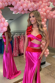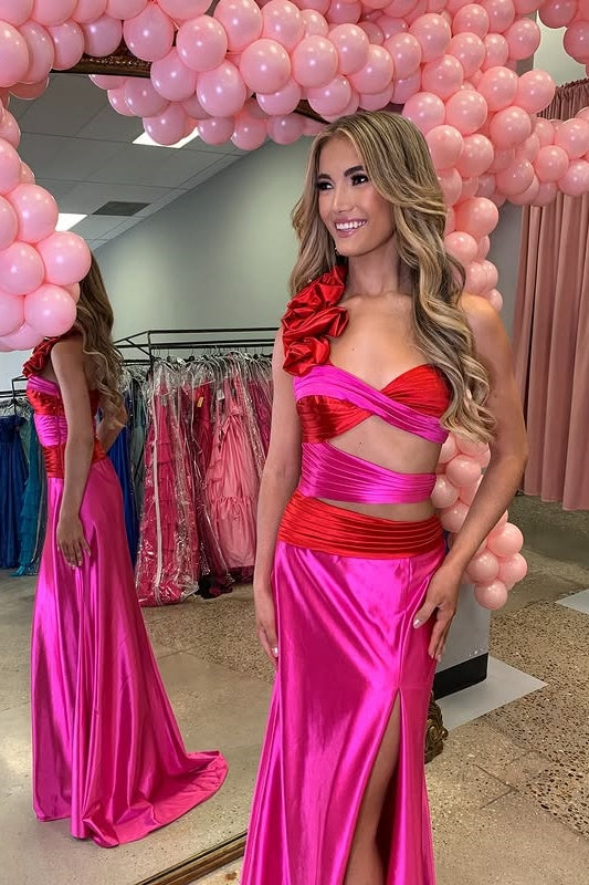Floral One Shoulder Illusion Empire Mermaid Party Prom Dress