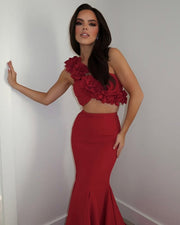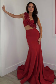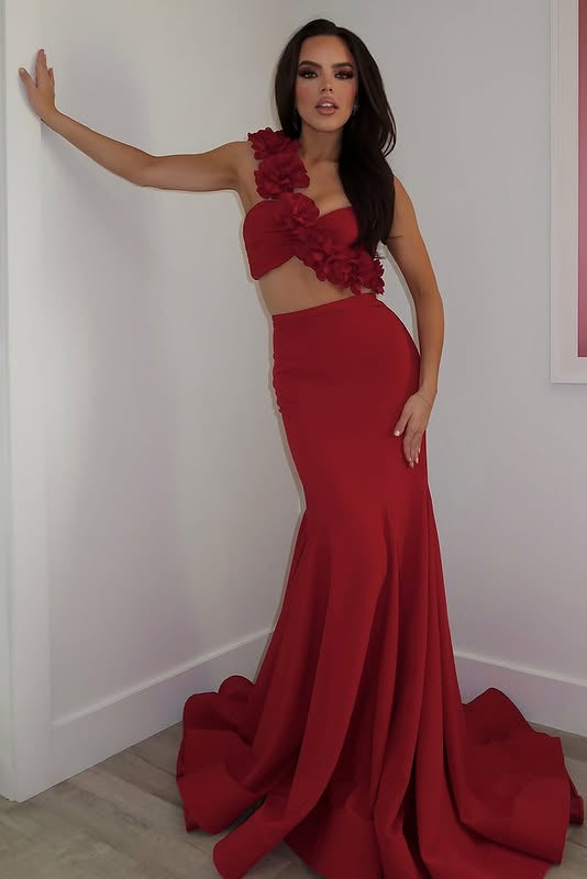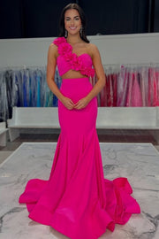 Floral One Shoulder Two Tone Mermaid Party Prom Dress
