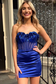 Florals Strapless Satin Bodycon Lace Up Homecoming Dress