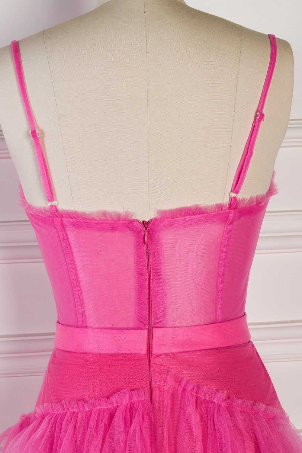 Straps Tulle A-Line Sheer Empire Tiered Prom Party Dress