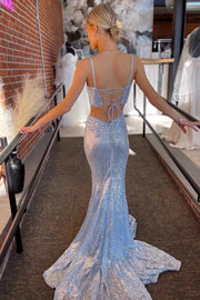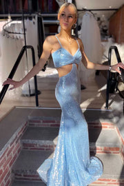 Fully Sequins Mermaid V-Neck Illusion Empire Party Prom Dress