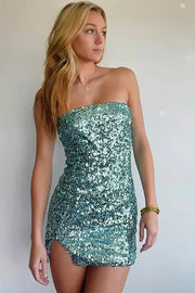 Glitter Fully Sequins Bodycon Strapless Homecoming Dress