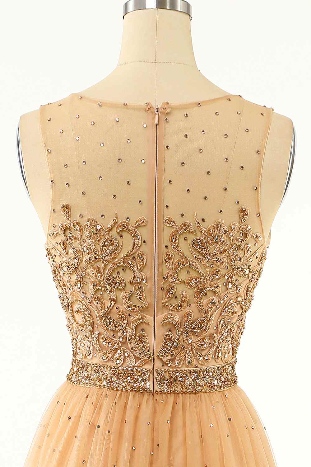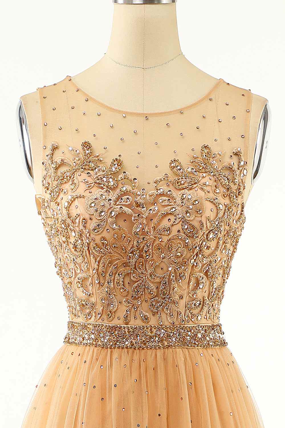 Round Sleeveless Empire A-Line Appliques Prom Party Dress