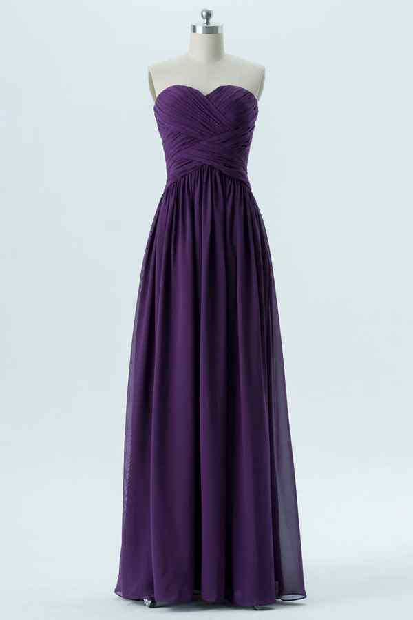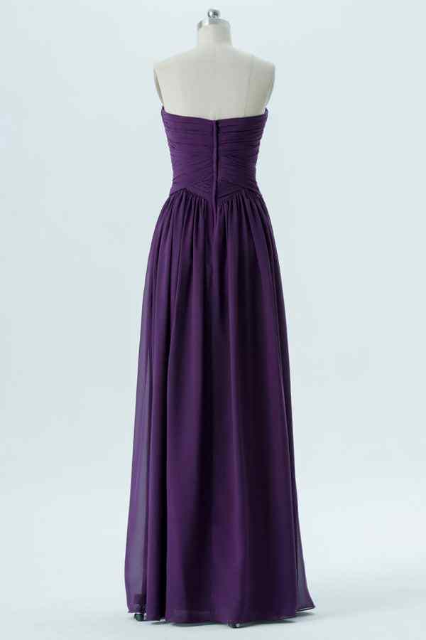 Grape A-line Strapless Pleated Chiffon Long Bridesmaid Dress