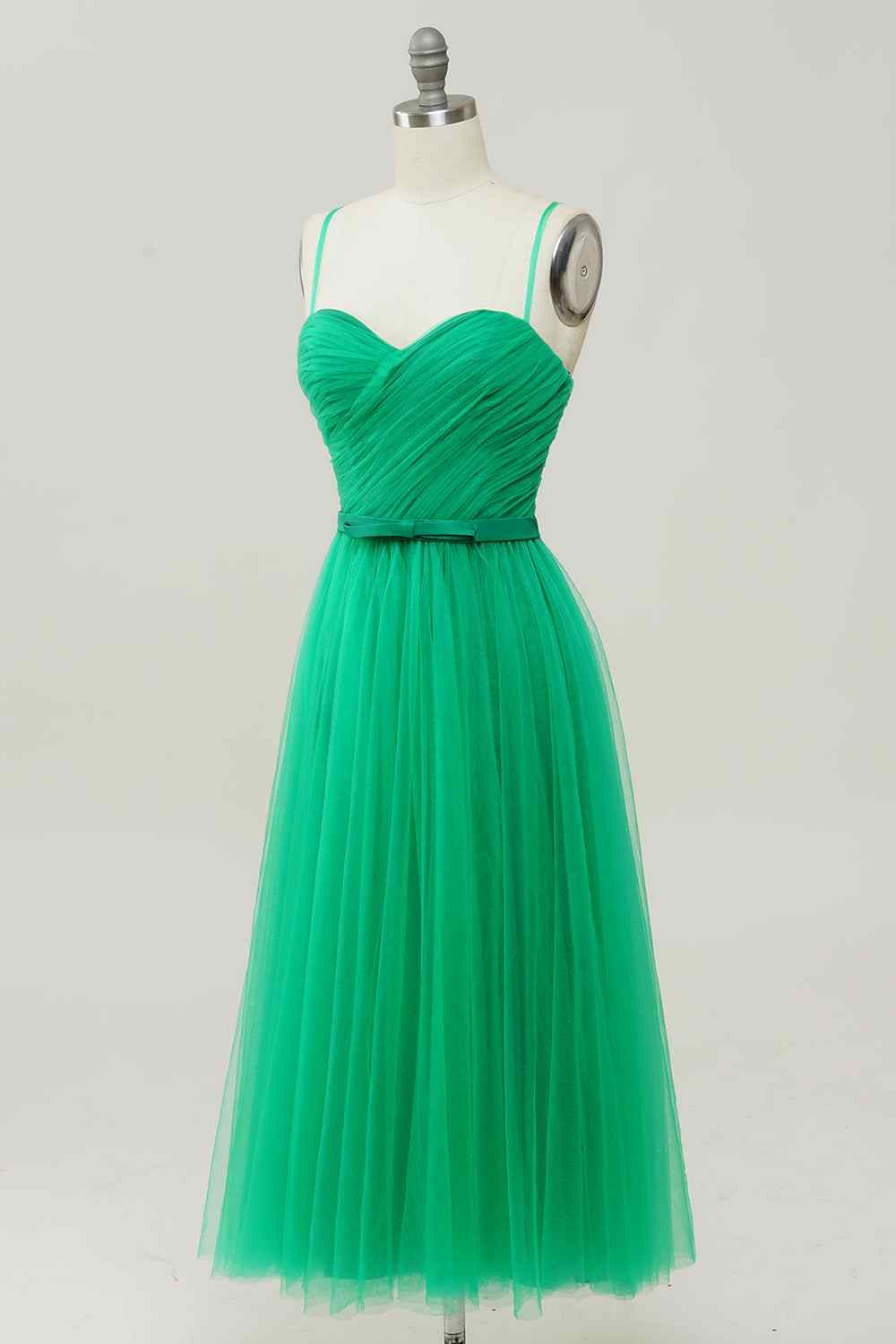 Green A-line Sweetheart Sleeveless Tulle Midi Party Prom Dress