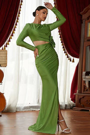 Green Satin Mermaid Illusion Empire Party Evening Dress