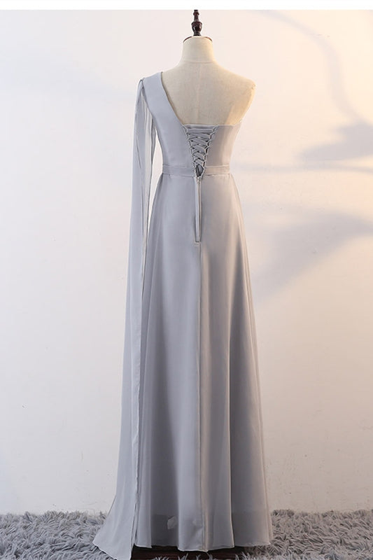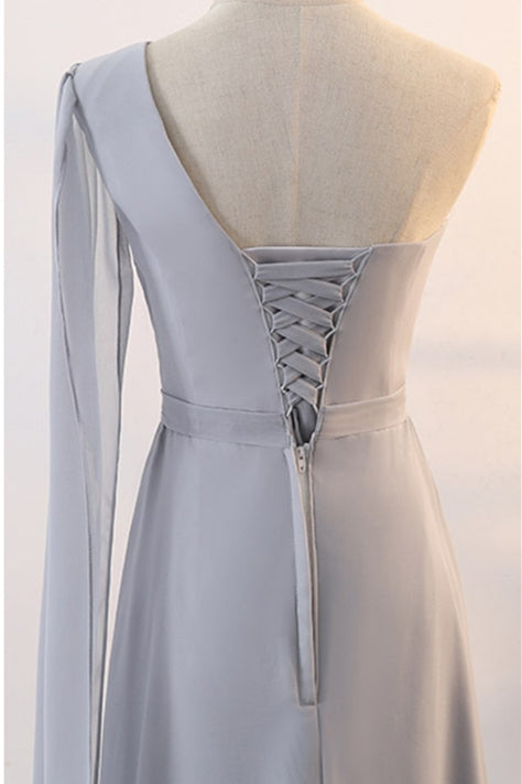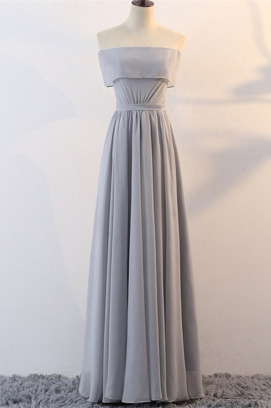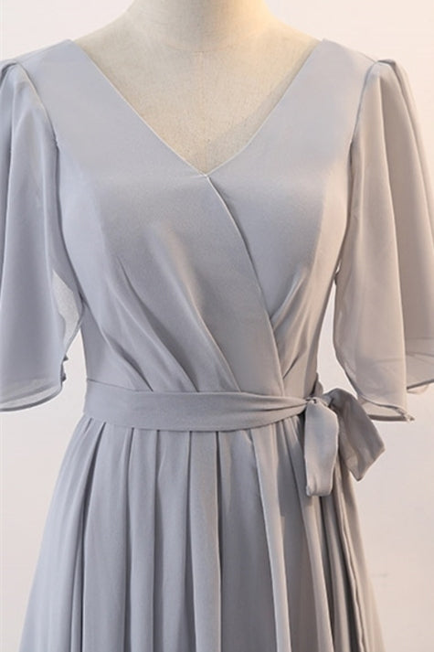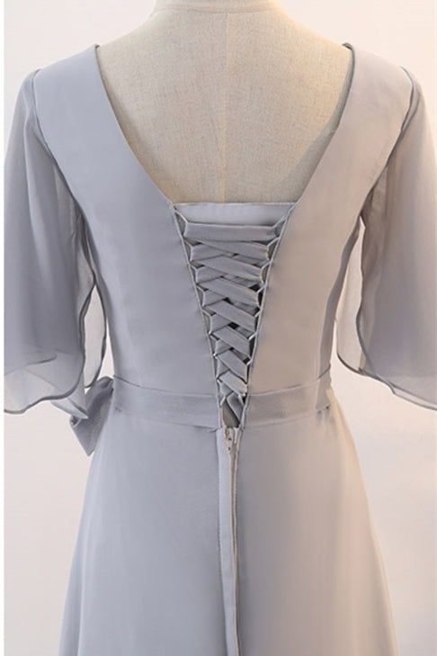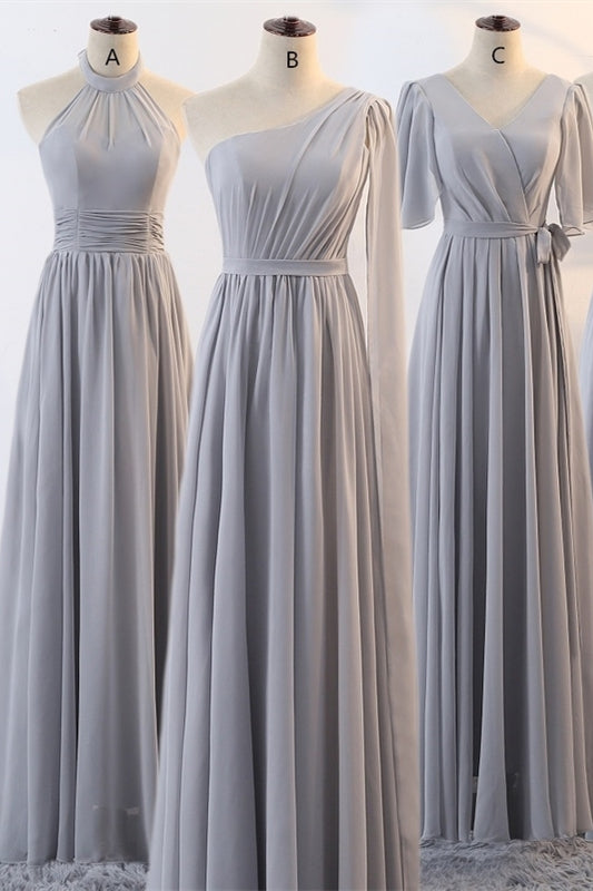 Grey Chiffon Long Mismatched Bridesmaid Dresses